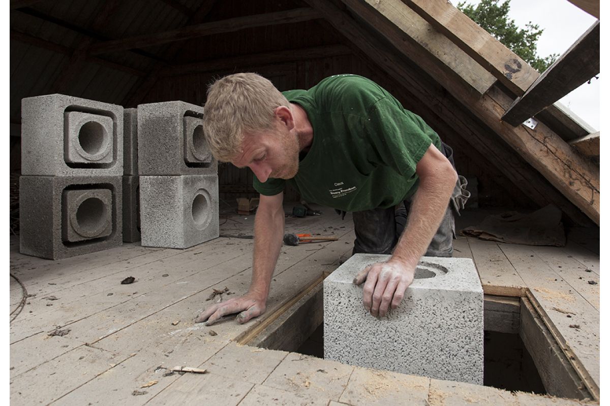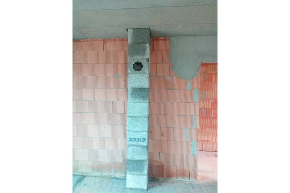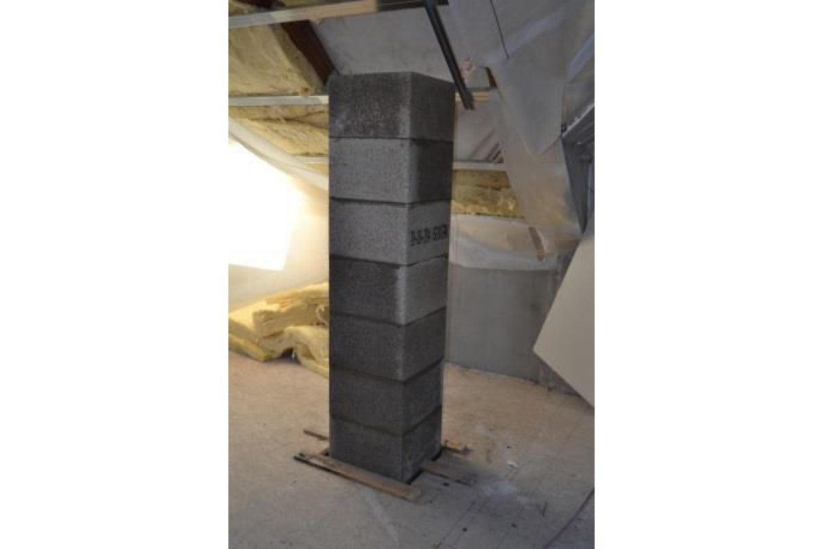Na etapie stawiania pumeksowego komina nie musimy martwić się na jakiej wysokości umieścić trójnik, jak to jest w przypadku ogólnodostępnego komina ceramiczno-betonowego. Gdy przyjdzie kiedyś na to czas, bardzo łatwo wykonujemy otwór przyłączeniowy precyzyjnie w miejscu, gdzie jest on potrzebny, a nie dostosowujemy się do istniejącego trójnika, umieszczonego na losowo wybranej wysokości, podczas stawiania komina, gdy nasz dom był w stanie surowym. Na tym etapie często inwestorzy nie mają zielonego pojęcia, gdzie ten trójnik właściwie umieścić. Jest to niezwykle ważna zaleta tych kominów (a kominów ceramiczno-betonowych-wada).