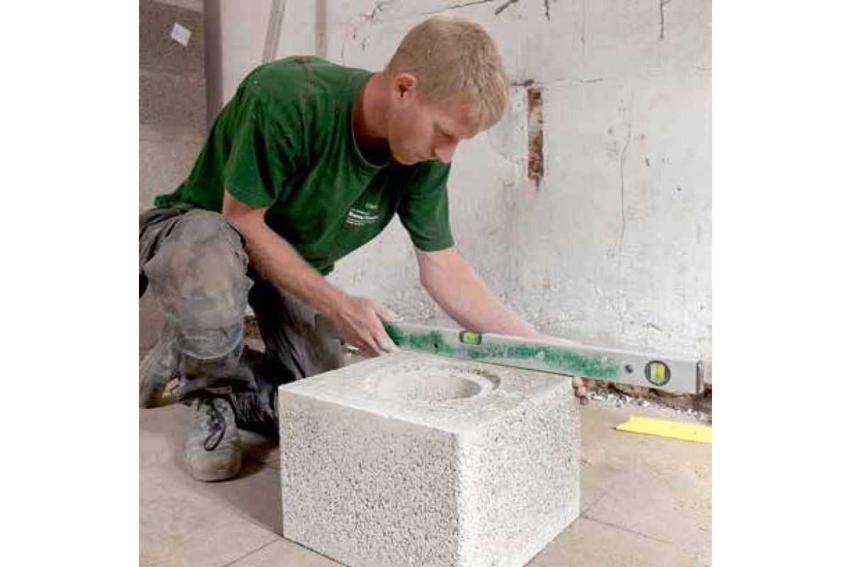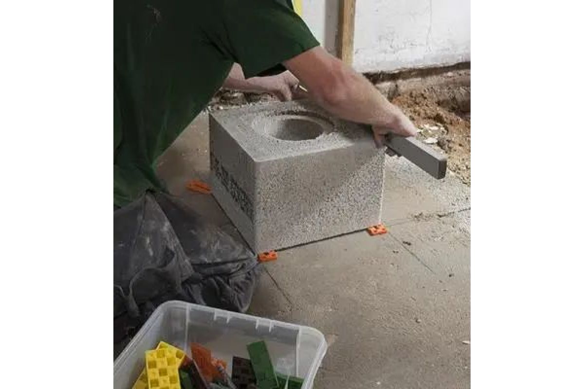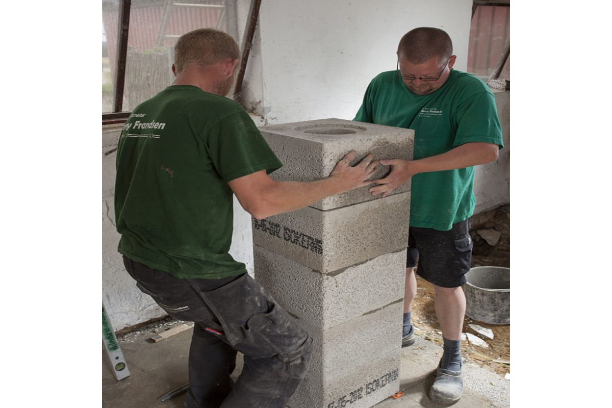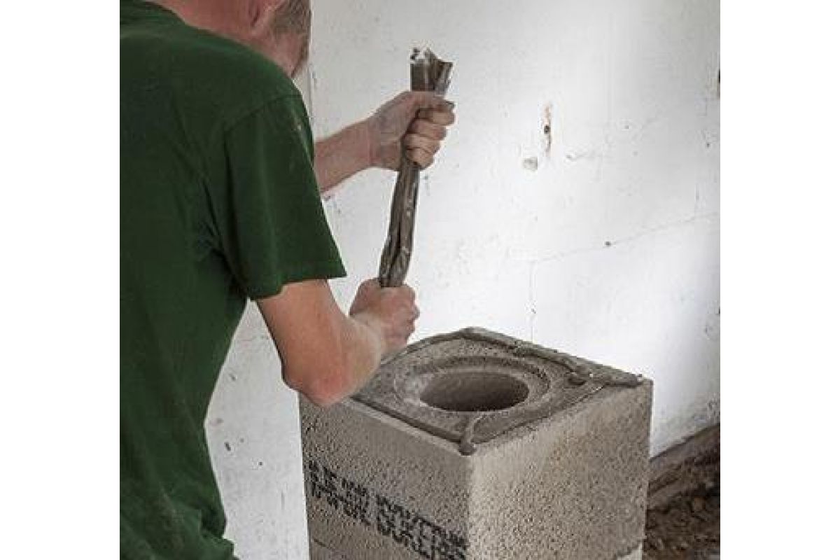 W górnej części kształtki jest okrągła niecka, w dolnej wypustka. Jedno w drugie idealnie pasuje. System jest tak prosty w montażu, jak dziecięce klocki. Pumeks z lawy wulkanicznej jest lekki, więc można go stawiać bez pomocnika. Producent dopuszcza zmontowanie jego przez każdego biegłego technicznie właściciela budynku lub inną osobę, nie będącą specjalistyczną firmą, udzielając na komin 30-letniej gwarancji.
